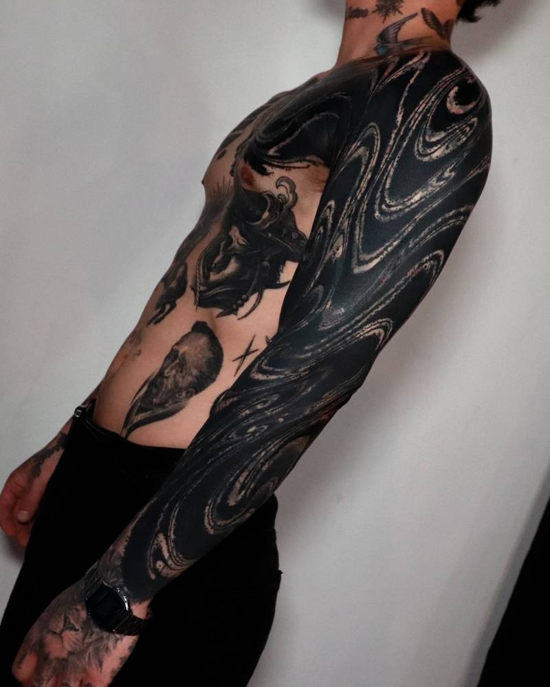 El negro, lejos de ser simple, demostró su versatilidad. Algunos artistas lo usaron para crear atmósferas densas, casi ceremoniales; otros, para explorar estilos tribales contemporáneos o reinterpretar elementos ancestrales con una estética moderna. El blackwork siguió siendo un símbolo de identidad fuerte, conectado a raíces culturales y a la estética del cuerpo como espacio ritual.